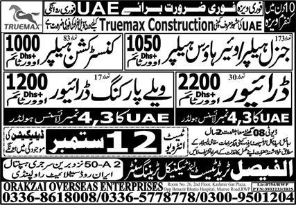 Al Faisal Trade Test & Technical Training Center is offering job opportunities in Abu Dhabi and Dubai (UAE), as advertised in the Daily Express on September 9, 2025. The available positions include General Helper, Construction Helper, Driver, Warehouse Helper, and Valet Parking Driver. Applicants with Matric or Intermediate education can apply. These roles come with attractive salaries starting from 170,000 PKR. The last date to apply is September 12, 2025, or as mentioned in the official advertisement. To find out how to apply, please check the full ad online. For more updates on overseas jobs, visit Teezjob.com regularly.