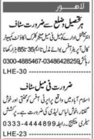 A reputable private company has announced several new job openings in Lahore and Islamabad, Punjab, as published in the Daily Express Newspaper on 11 September 2025. The company is looking for motivated and hardworking individuals to fill various positions, including Accountant, Female Manager, Manager, Clerk, Office Boy, Lady Office Staff and Computer Call Operator. Candidates with educational qualifications such as Middle, Matric, Intermediate, BA or Bachelor’s degrees will be preferred according to the requirements of each post.