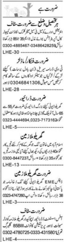 A well-known private company based in Gulberg 3, Lahore, Punjab, has announced a large number of new vacancies, as published in the Daily Express Newspaper on 11 September 2025. The organisation is looking for motivated and reliable people to join its team in many different roles. Positions currently available include Chowkidar, Aya, Cook, LTV Driver, Female Manager, Chinese Cook, Office Assistant, Nanny, Driver, Model, House Driver, Office Boy, Accountant, Manager, Computer Call Operator, Clerk and Actor.